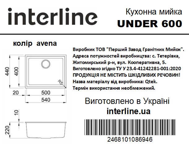 Мийка Interline UNDER 600 avena