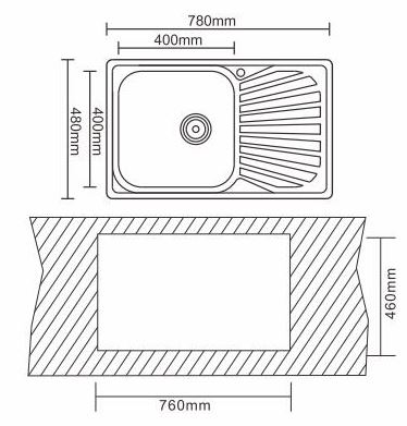 Розмір мийки: Ш780 х В480